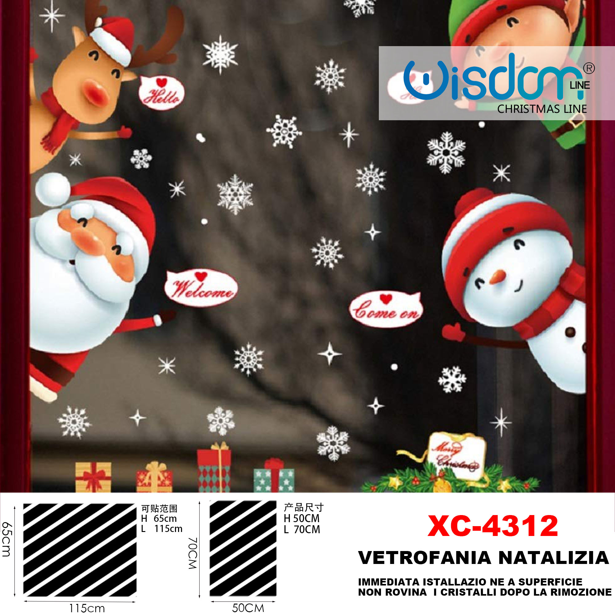 Adesivi natalizi con sfondo personaggi di Natale in pvc per finestre e decorazioni dimensioni 50x70cm