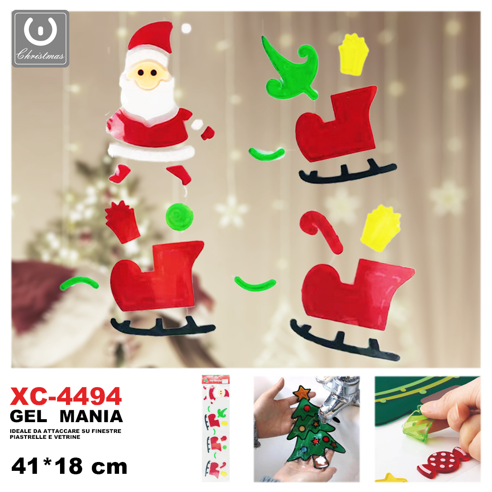 Adesivo in gel per decorazioni natalizie dimensione 41x18cm cm ideale da attaccare su finestre e vetrine