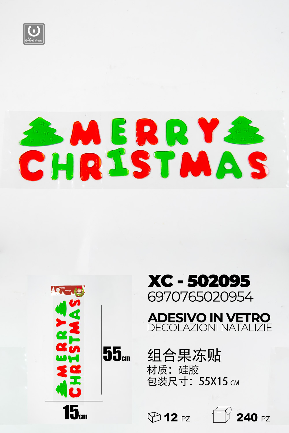 Adesivo in gel per decorazioni natalizie Merry Christmas dimensione 15×55 cm ideale da attaccare su finestre e vetrine