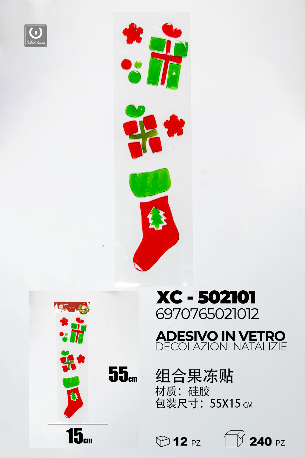 Adesivo in gel per decorazioni natalizie pacchetti regalo dimensione 15×55 cm ideale da attaccare su finestre e vetrine