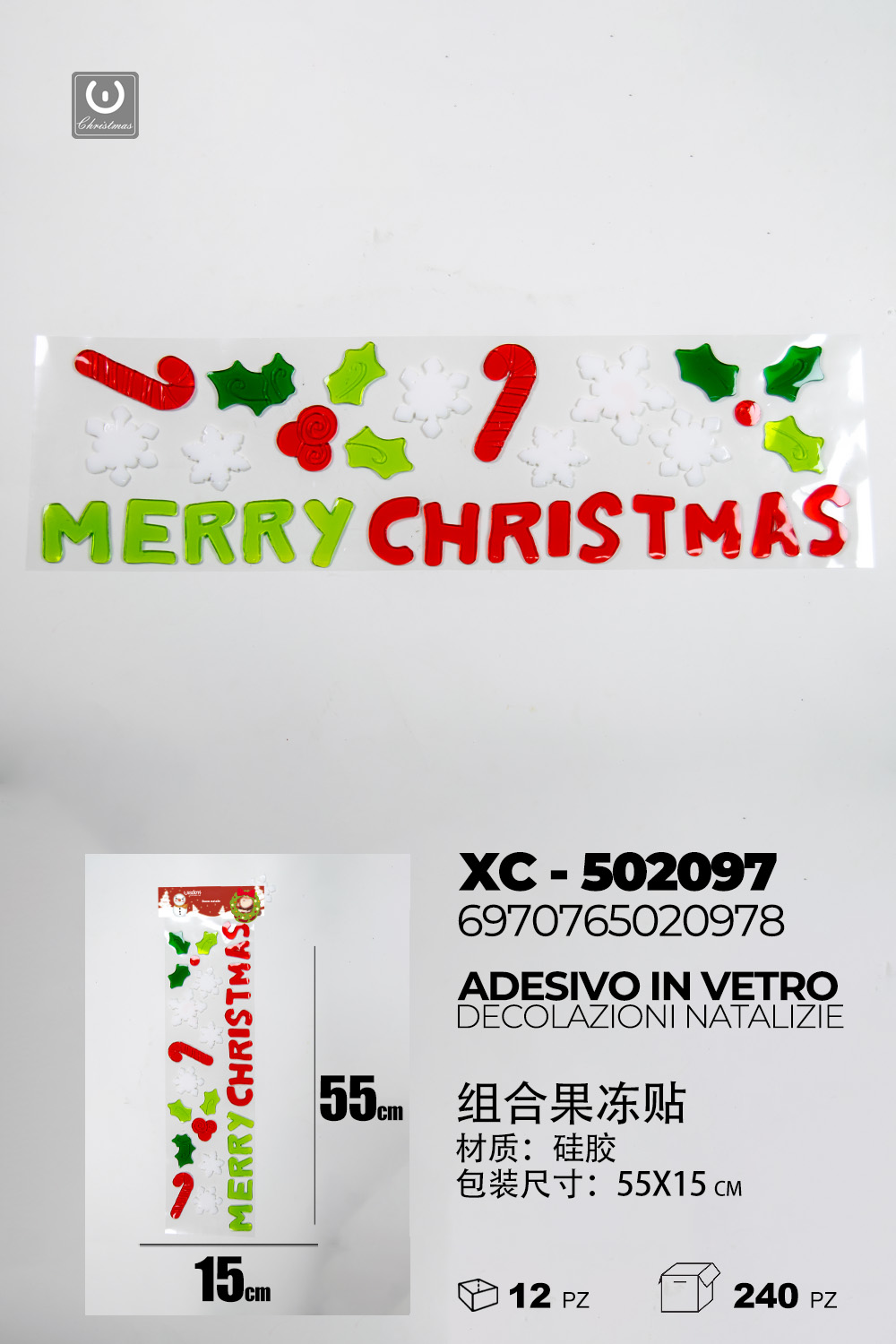 Adesivo in gel per decorazioni natalizie scritta Merry Christmas con fiocchi di neve dimensione 15×55 cm ideale da attaccare su finestre e vetrine