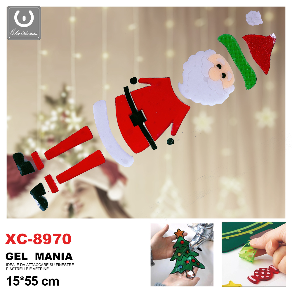 Adesivo in gel per decorazioni natalizie tema Babbo Natale dimensione 15×55 cm ideale da attaccare su finestre e vetrine