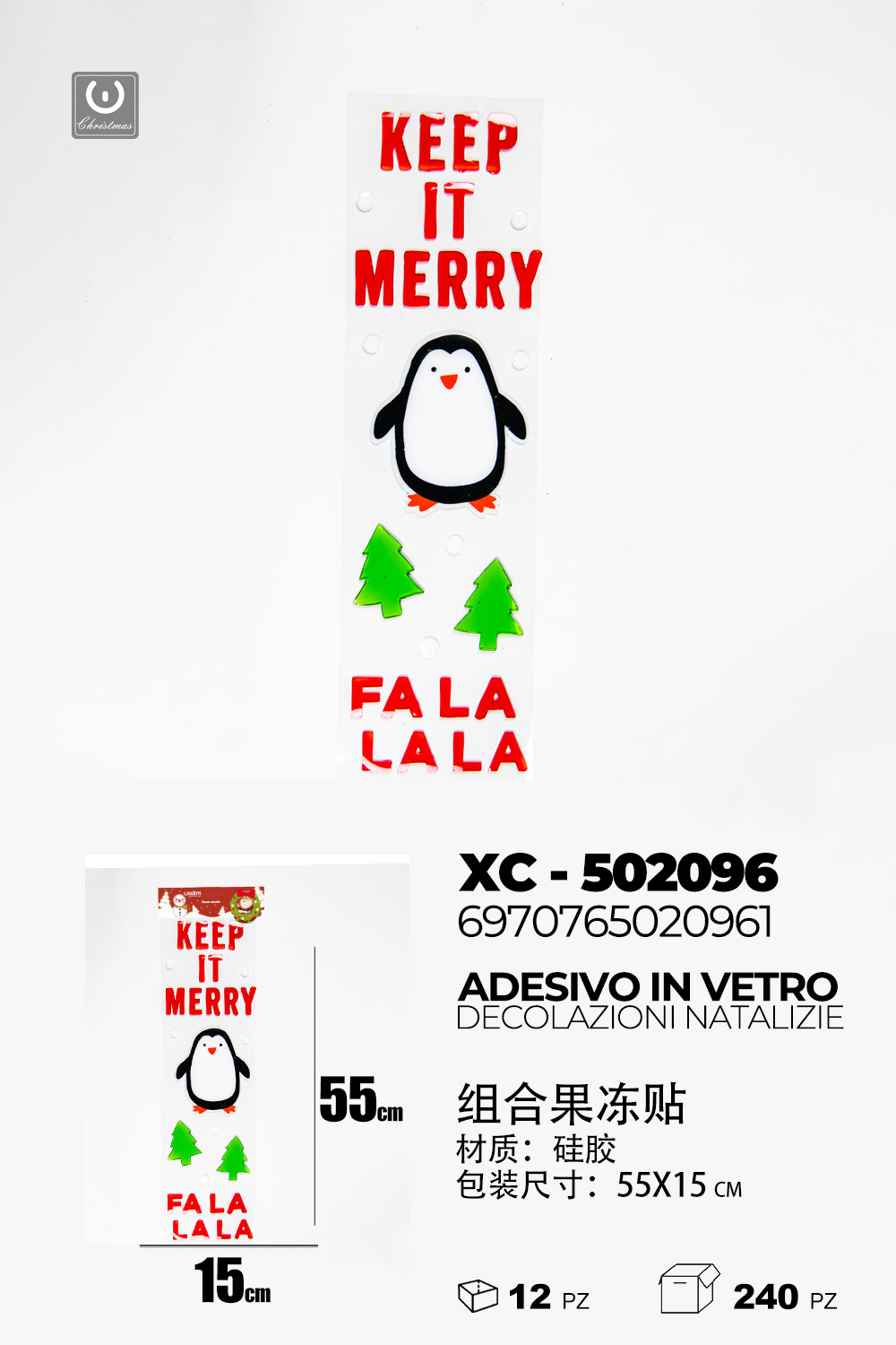 Adesivo in gel per decorazioni natalizie tema pinguino dimensione 15×55 cm ideale da attaccare su finestre e vetrine