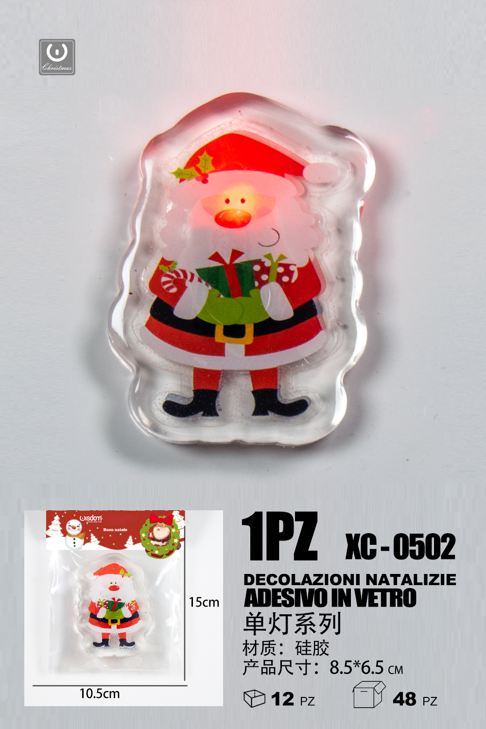 Adesivo Natalizio in gel a forma di Babbo Natale con lucina rossa dimensioni 8,5×6,5cm