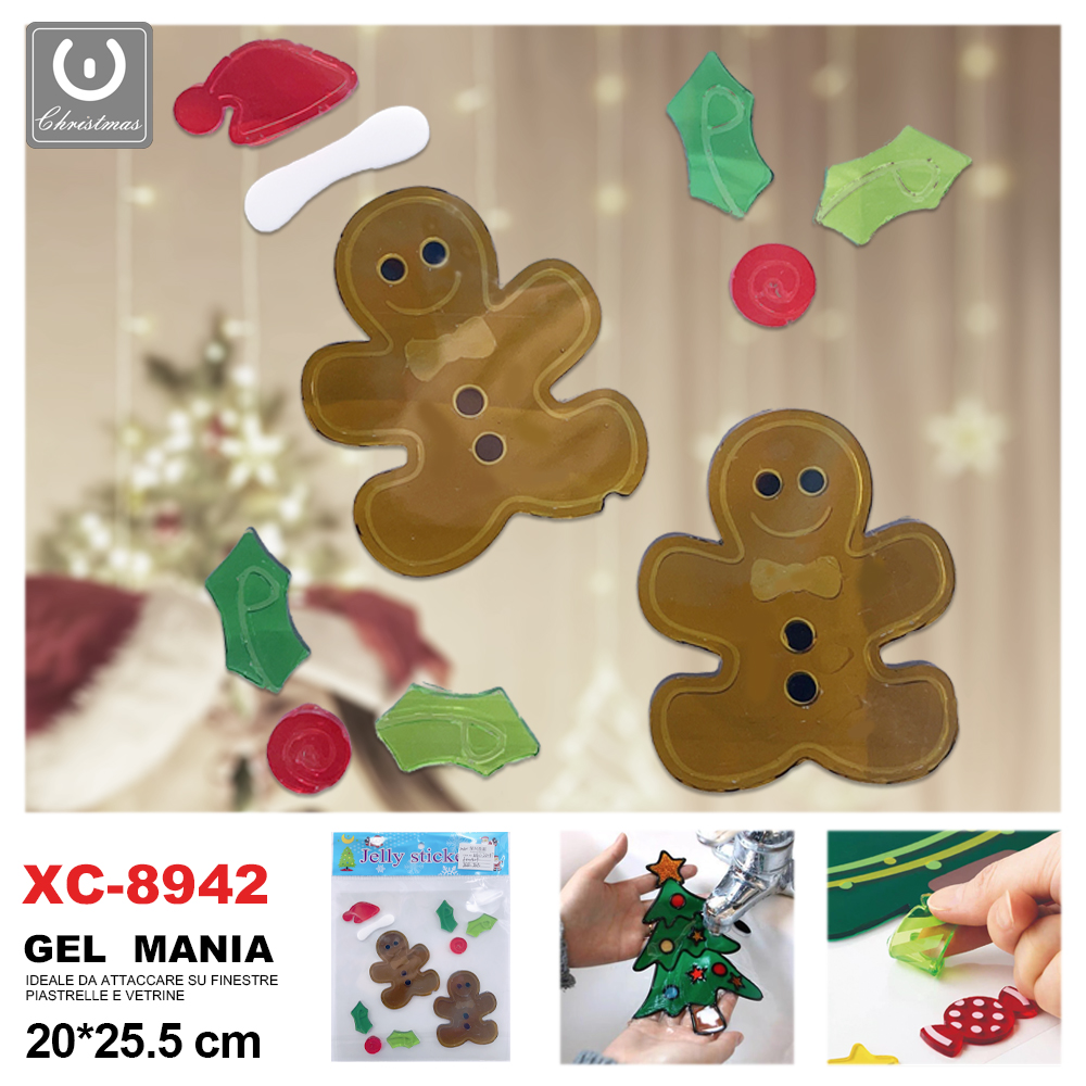 Adesivo Natalizo in gel a tema pan di zenzero dimensione 20×25,5cm ideale da attaccare su finestre e vetrine