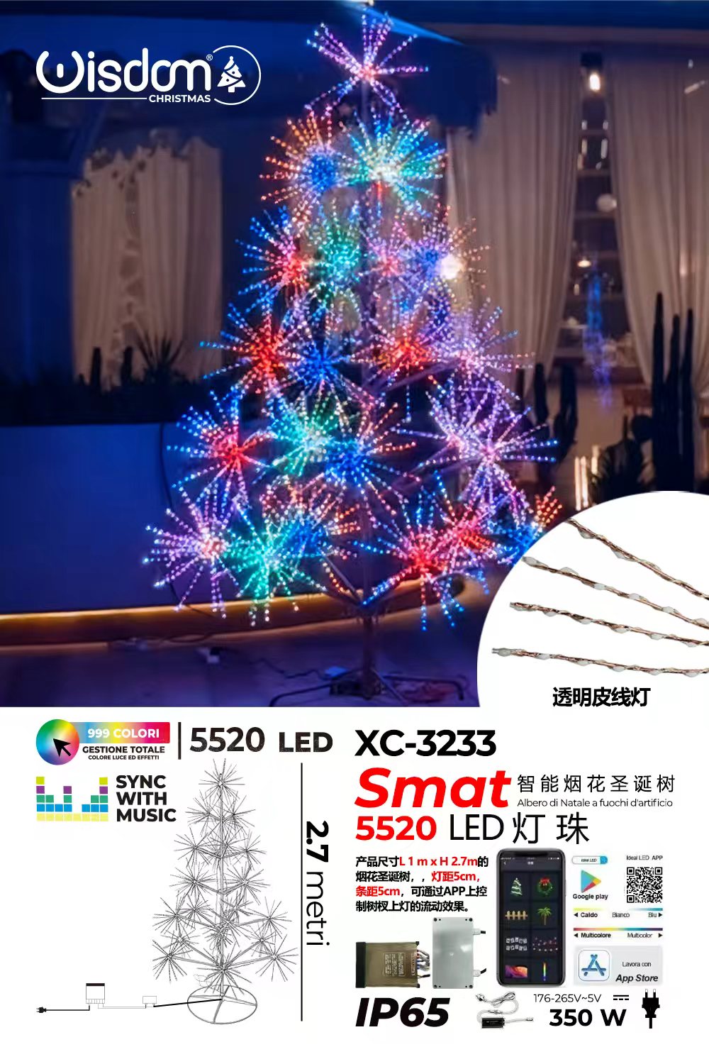 Albero di Natale smart altezza 2,7 metri 5520 LED IP65 uso interno esterno controllo tramite app