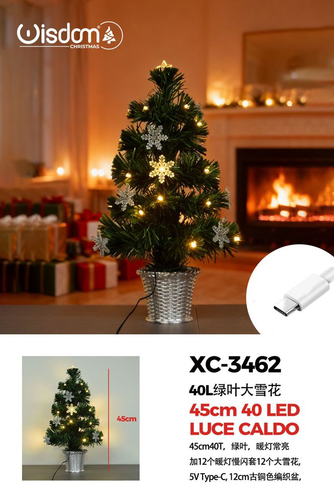 Albero fibra ottica,40 LED luce Calda , 12 fiocchi di neve, vaso intrecciato bronzo ,45 cm, attacco USB