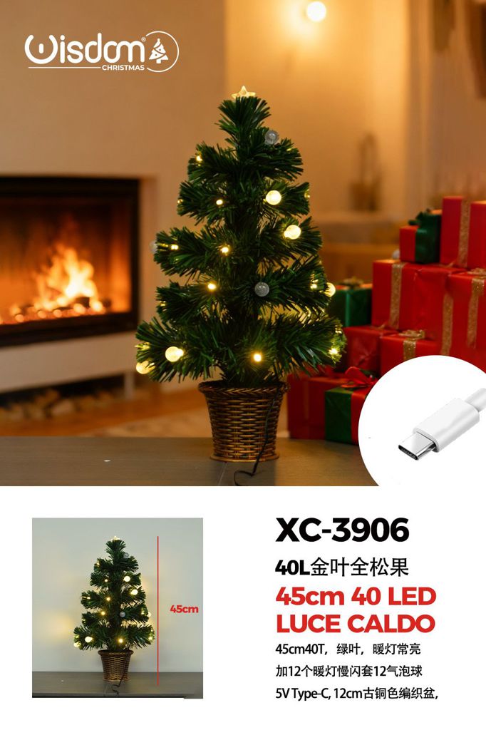 Albero fibra ottica,40 LED luce Calda , con palline luminose lampeggianti , vaso intrecciato bronzo ,45 cm, attacco USB