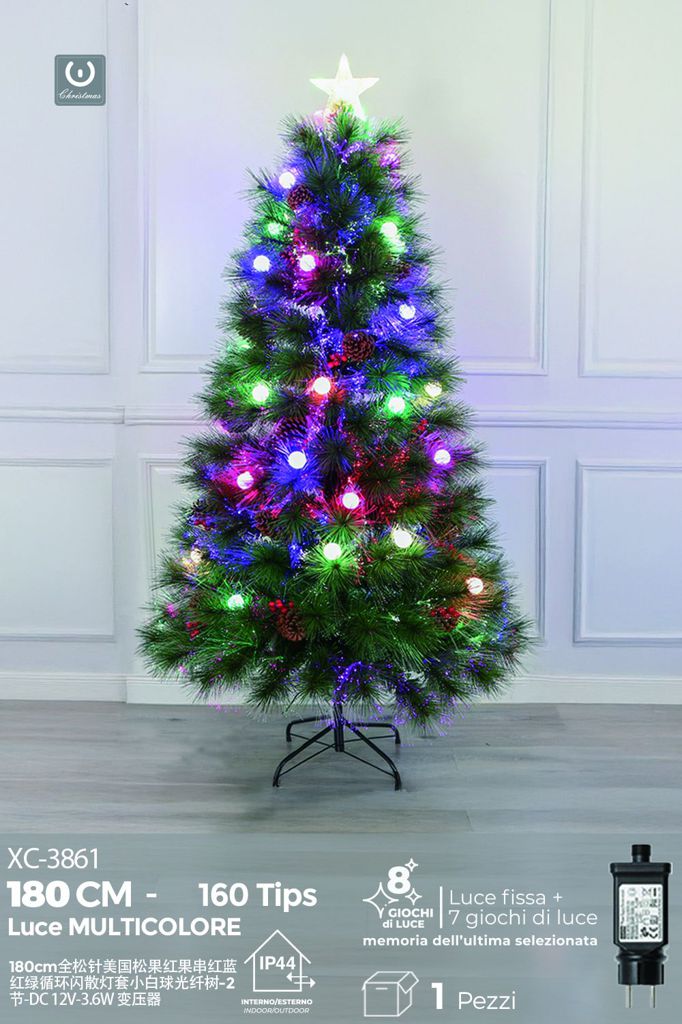 Albero in fibra ottica aghi di pino con palline luminose multicolor , controller a 8 funzioni, di luce 180 cm
