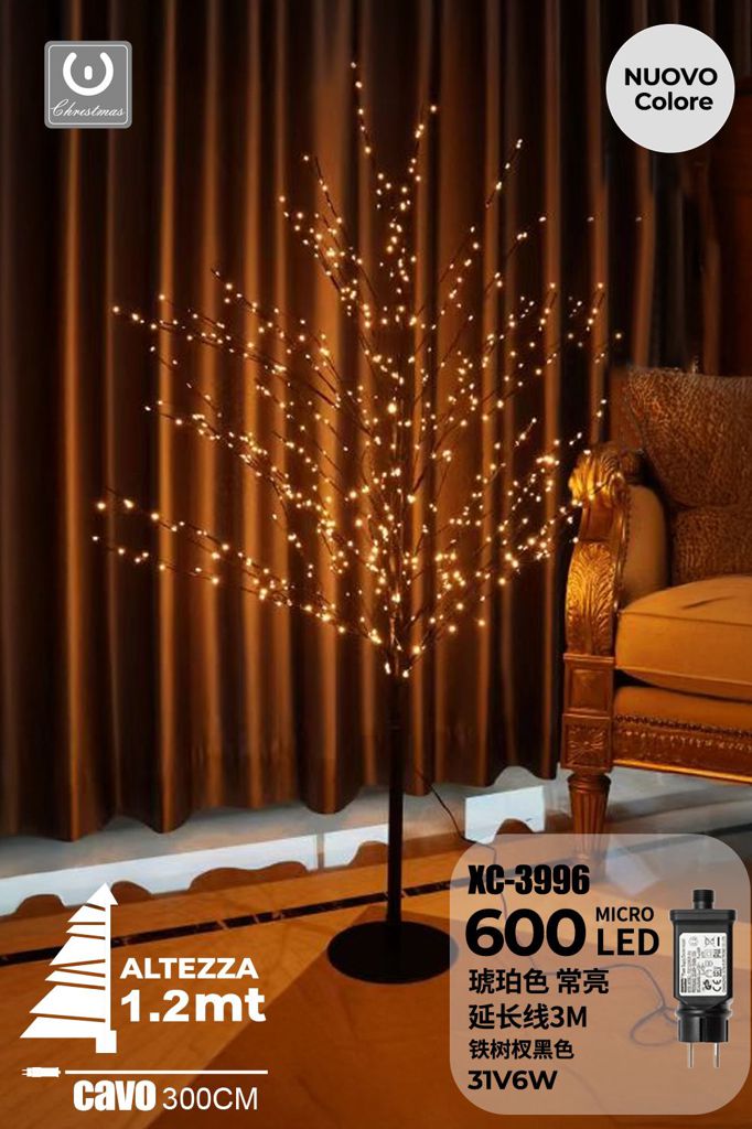 Albero luminoso da terra in ferro nero 600 LED color Ambra, 120 cm