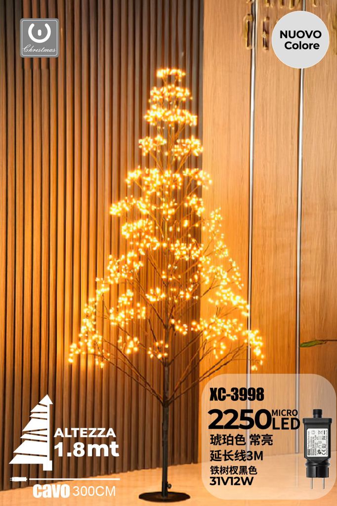 Albero luminoso in filo di rame effetto legno 180 cm da 2250 LED color Ambra , con 3 mt di cavo di alimentazione