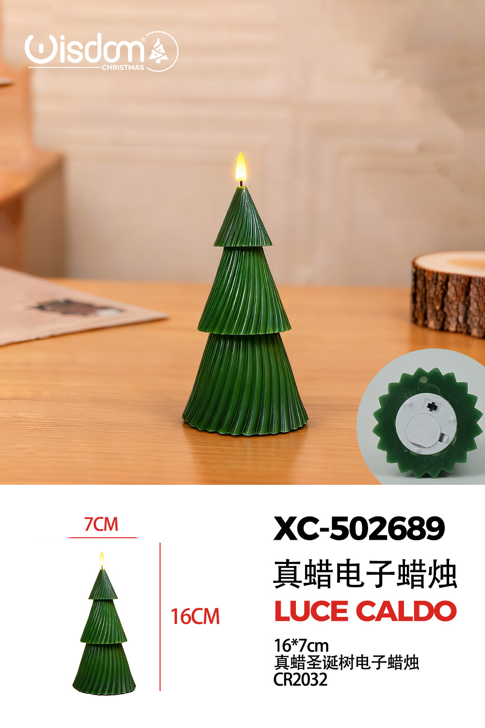 Recensisci per primo “Candela luminosa a forma albero di Natale realizzata in vera cera (16cmH) luce calda a LED alimentazione a pile”