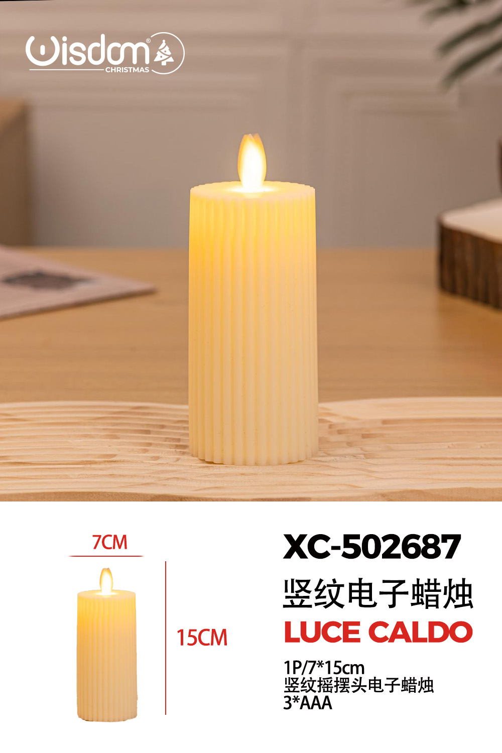 Candela luminosa (15cmH) luce calda a LED alimentazione a pile