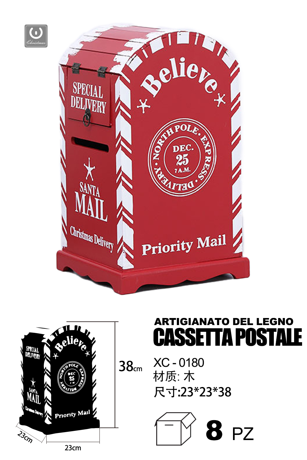 Cassetta postale natalizia rossa in legno dimensioni 23x23x38cm
