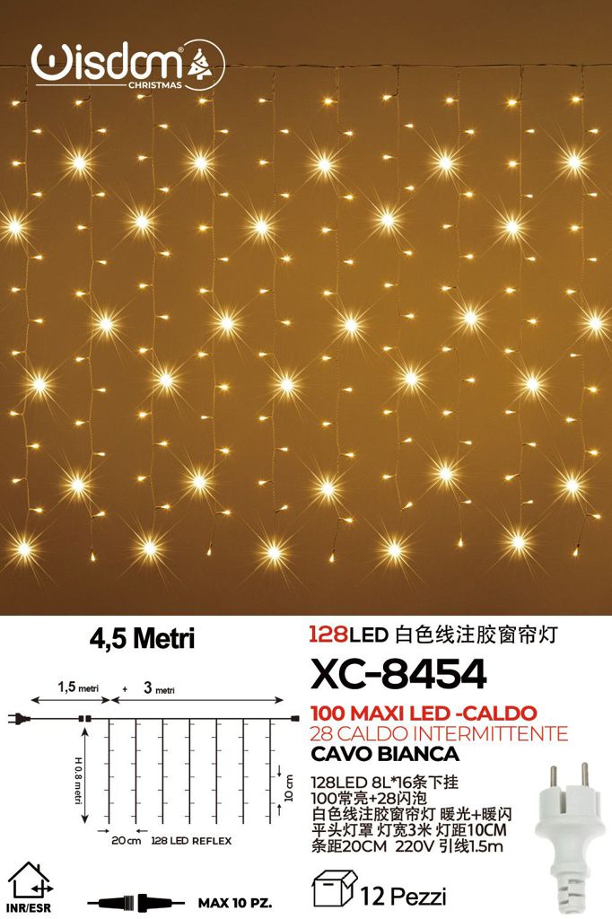 Catena 128MAXILED luce calda + caldo intermittente, 4,5 mt , cavo bianco ,collegabile max 10 pz
