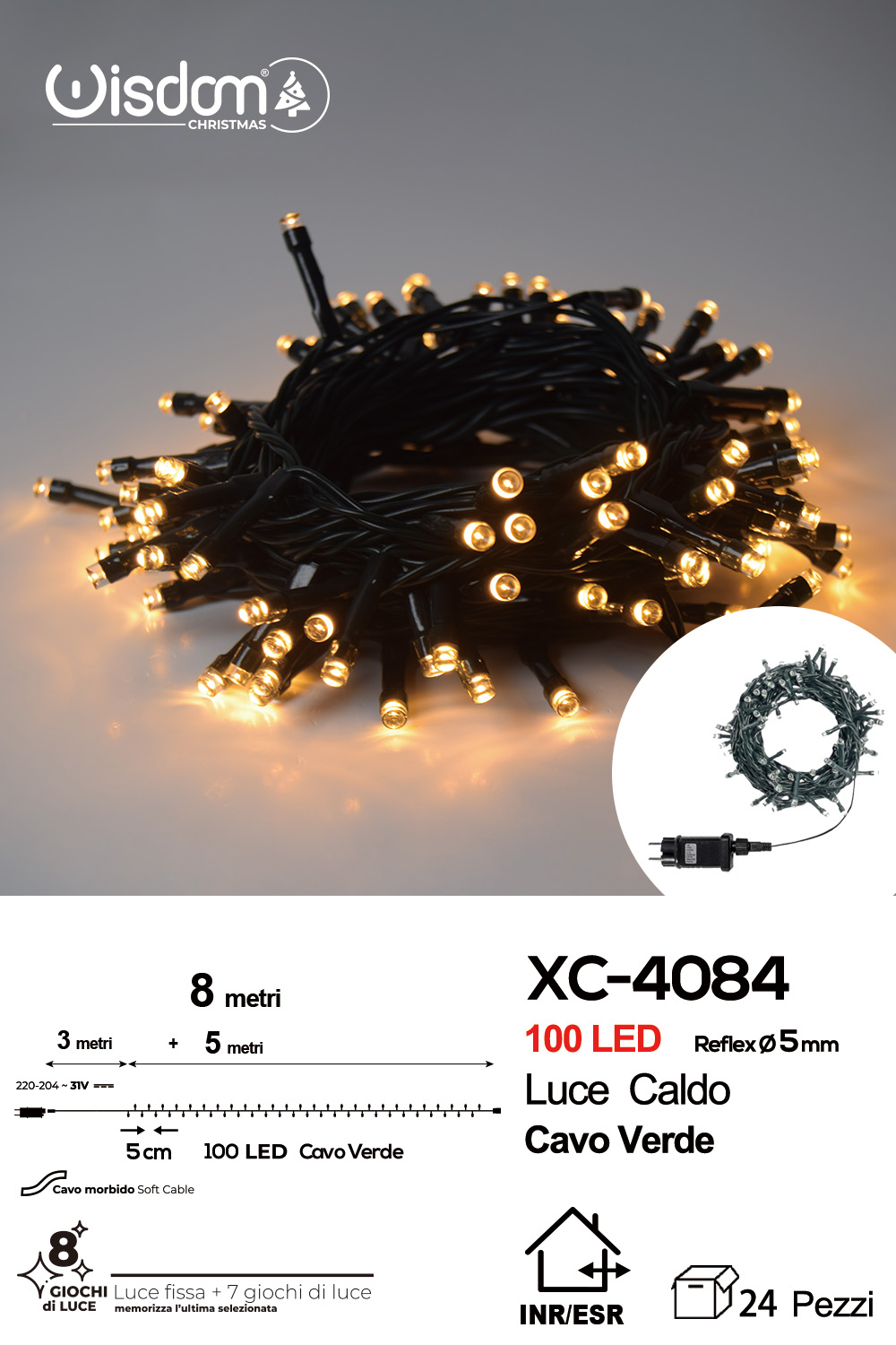 Recensisci per primo “Catena luminosa 100 LED luce calda da 8 metri con 8 giochi di luce ip44 per uso interno esterno”