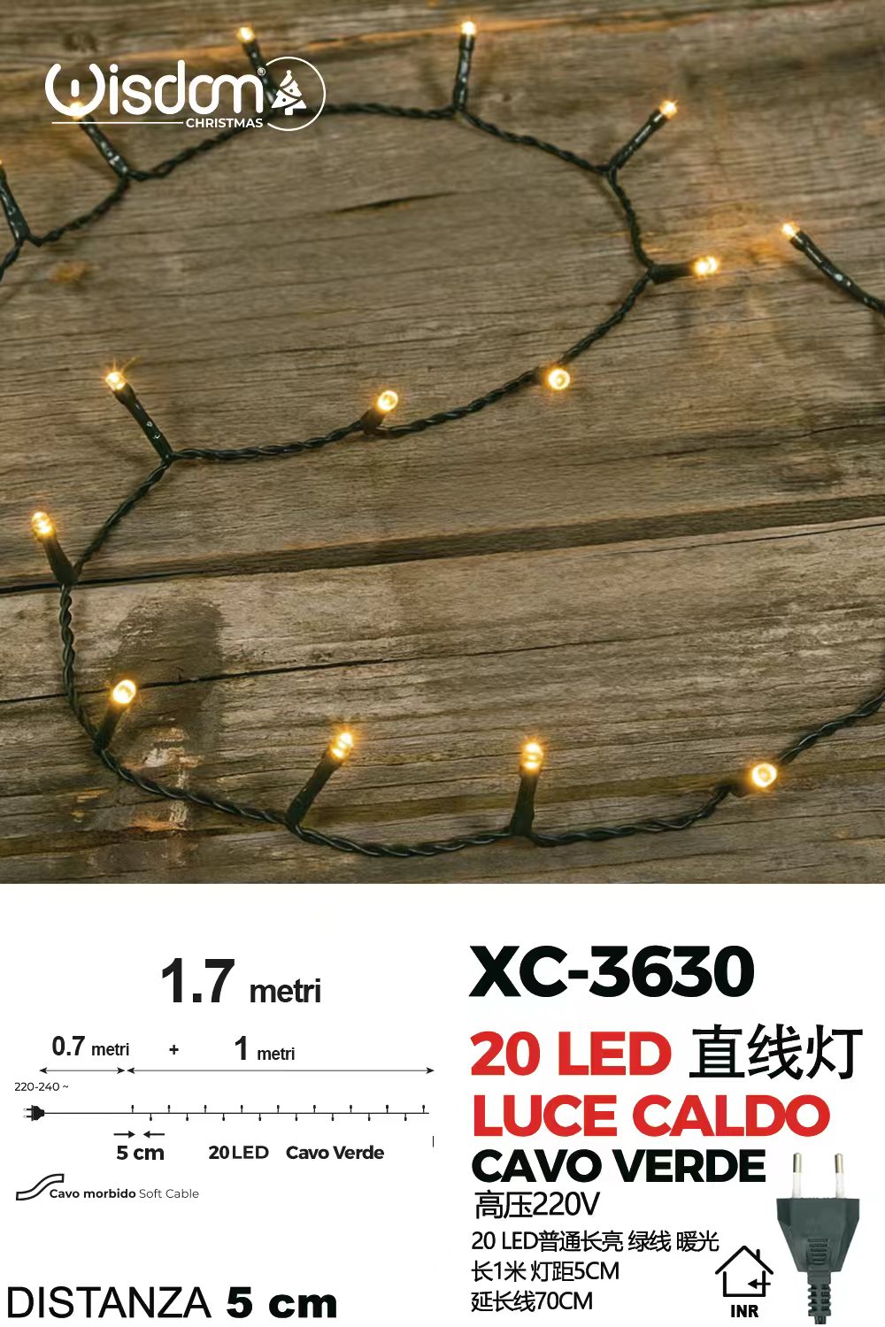 Catena luminosa 20 LED luce calda da 1,7 metri alimentazione a corrente per uso interno