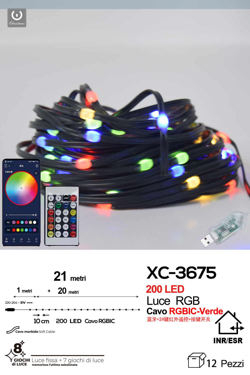 Catena luminosa 200 LED RGB lunghezza 21 metri