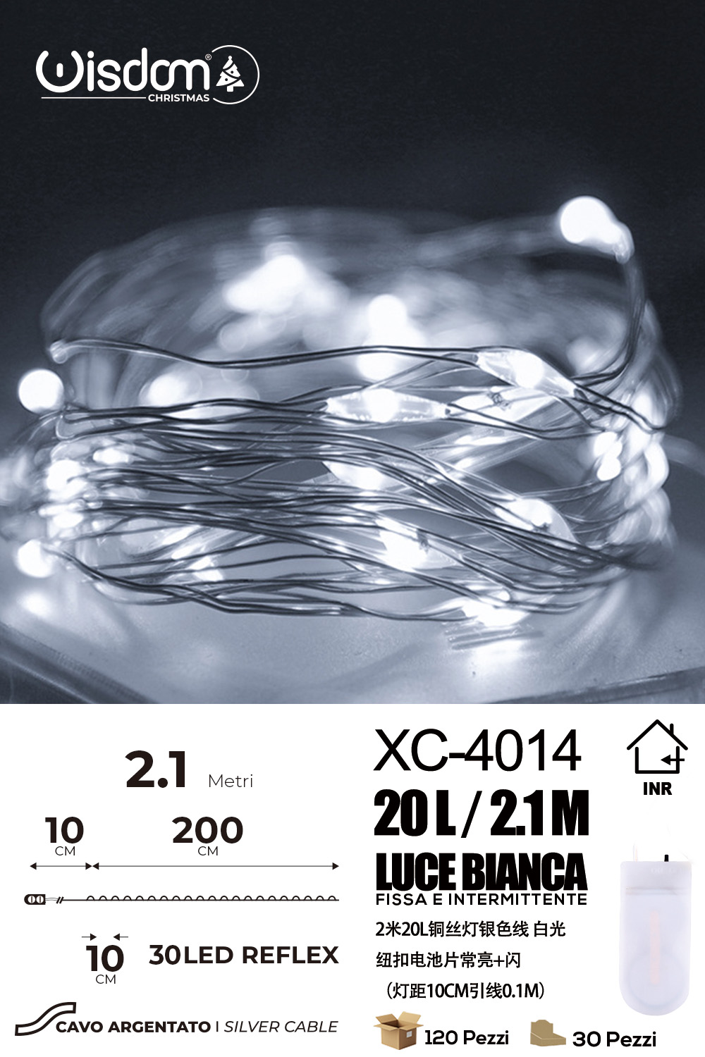 Catena luminosa 30 microLED REFLEX da 2,1 metri luce bianca alimentazione a pile per uso interno