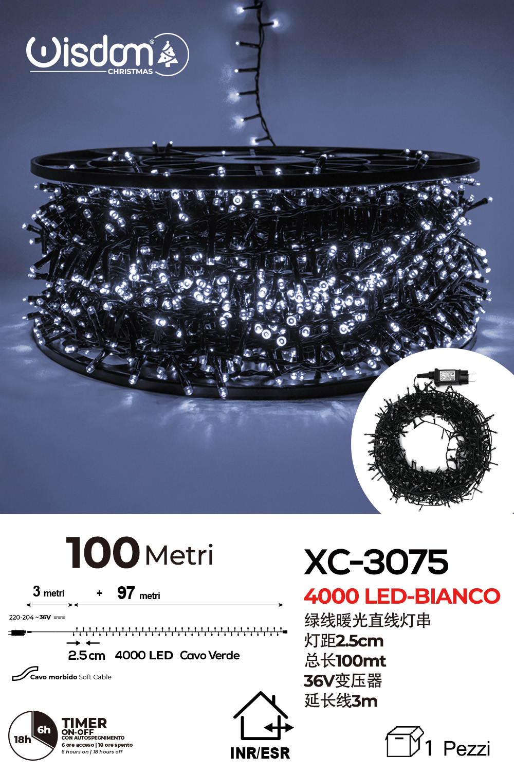 Catena luminosa 4000 LED luce bianca da 100 metri ip44 per uso interno esterno con funzione timer on-off