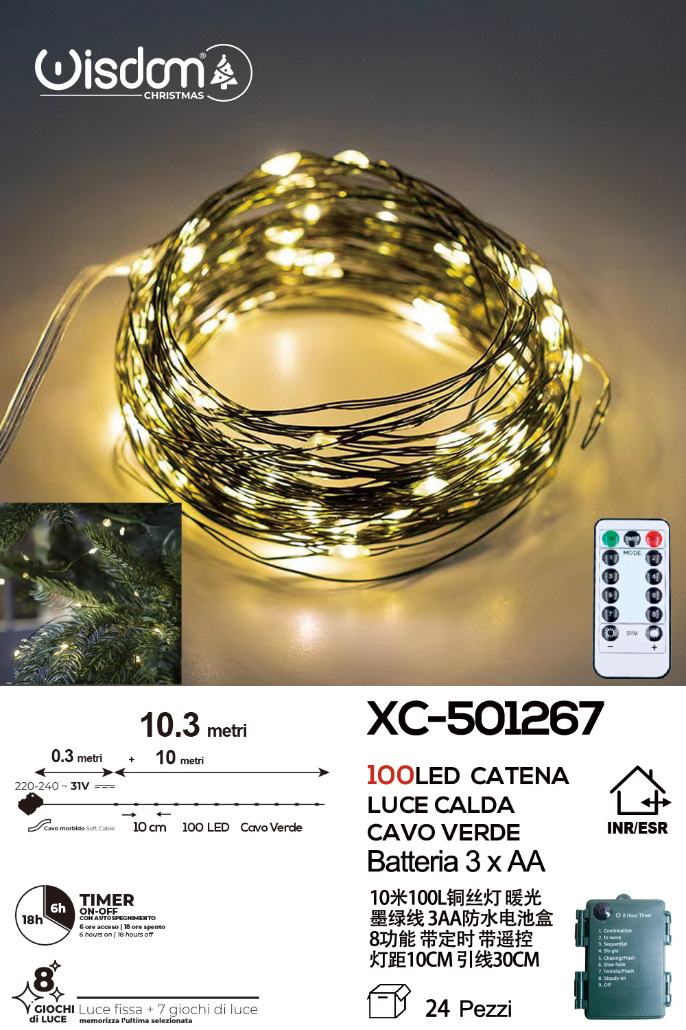 Recensisci per primo “Catena luminosa con telecomando da 100 microLED luce calda 10,3 metri alimentazione a pile ip44 per uso interno esterno con 8 giochi luce”