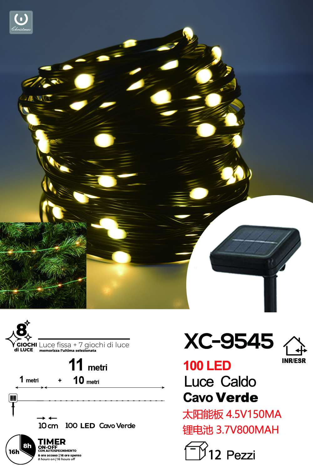 Catena luminosa da 11 metri a pannello solare picchetto 100 LED LUCE CALDA con 8 giochi luce e funzione timer on-off