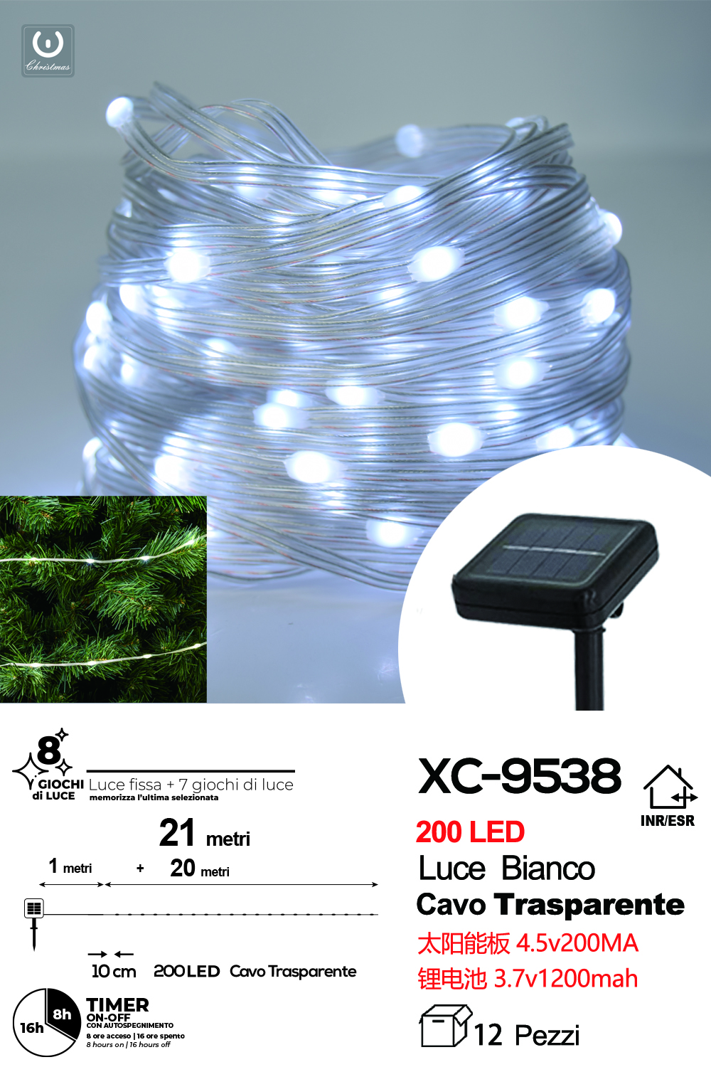 Catena luminosa da 21 metri a pannello solare picchetto 200 LED LUCE BIANCA con 8 giochi luce e funzione timer on-off