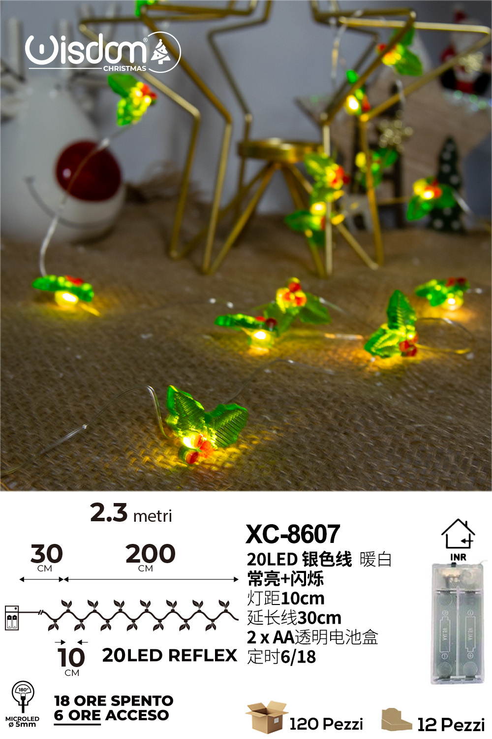 Recensisci per primo “Catena luminosa decorativa da 2,3 metri luce calda fissa o lampeggiante con 20 micro LED a forma di foglie alimentazione a batteria”