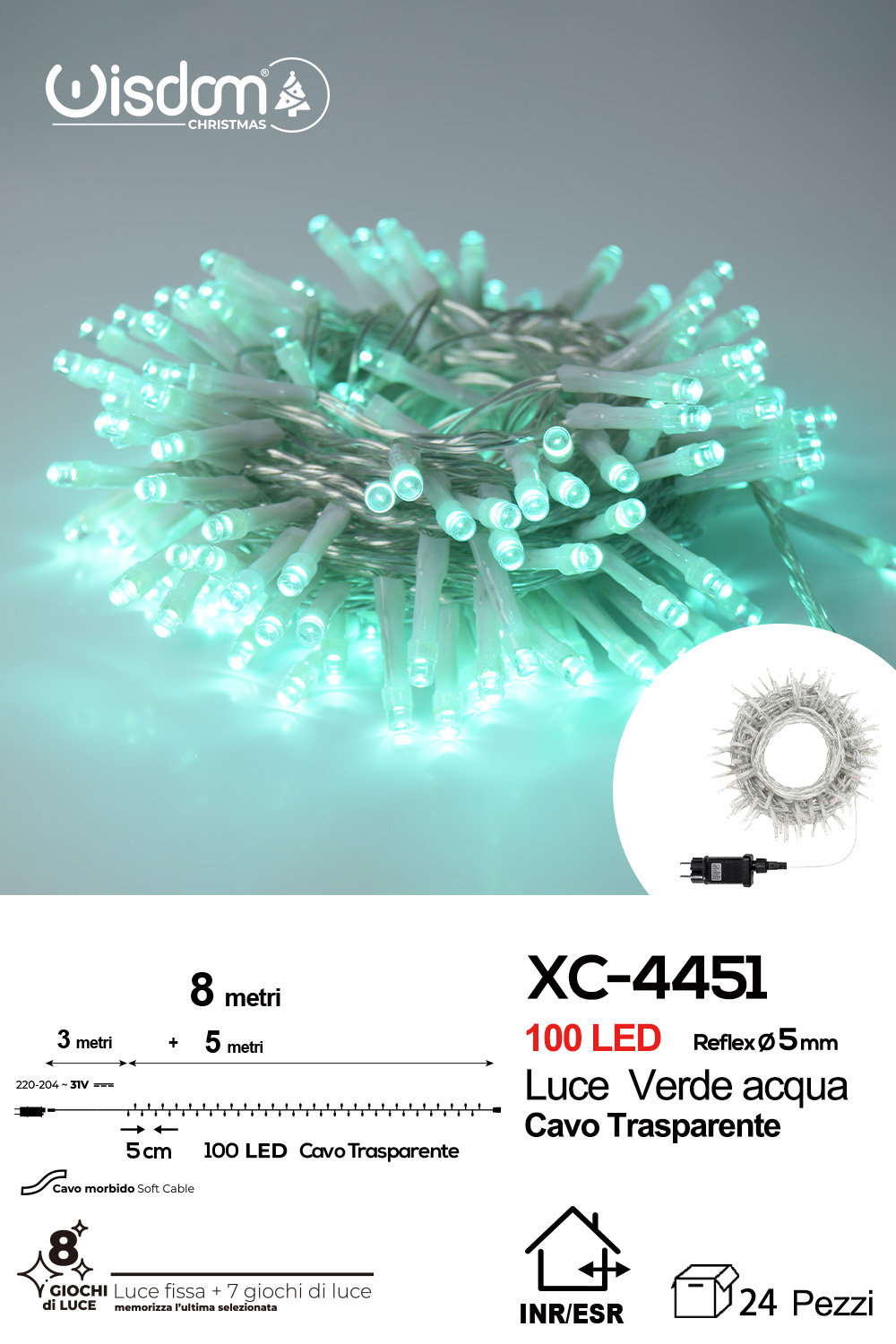 Recensisci per primo “Catena luminosa professionale 100 LED luce verde acqua da 8 metri ip44 per uso interno esterno con 8 giochi luce”