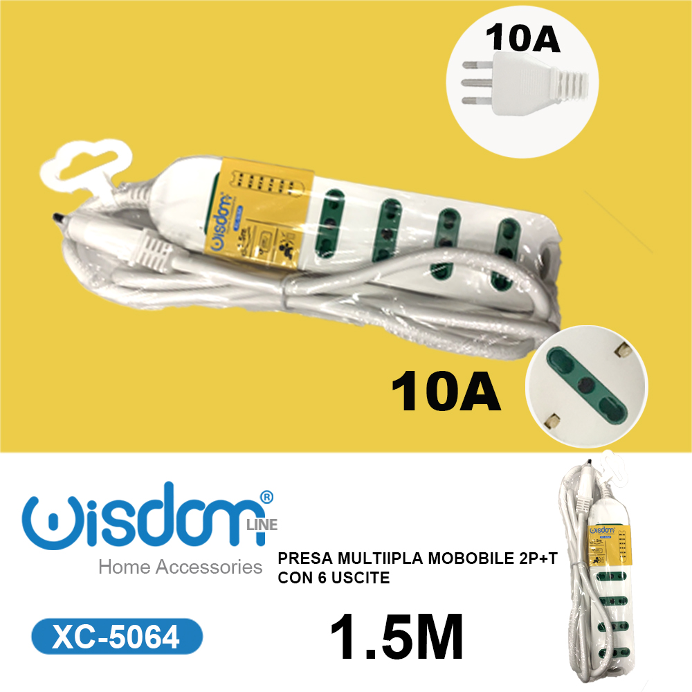 Ciabatta elettrica multipresa da 1,5 metri con 6 ingressi prese standard