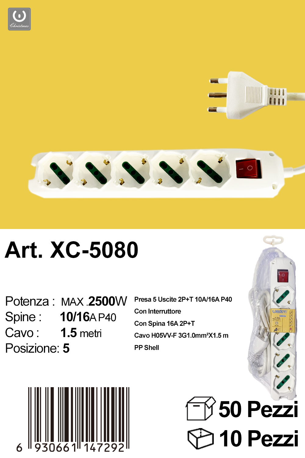 Recensisci per primo “Ciabatta presa bipasso a cinque posizioni cavo da 1,5 metri potenza max 2500w con prese uscite da 10 e 16A”