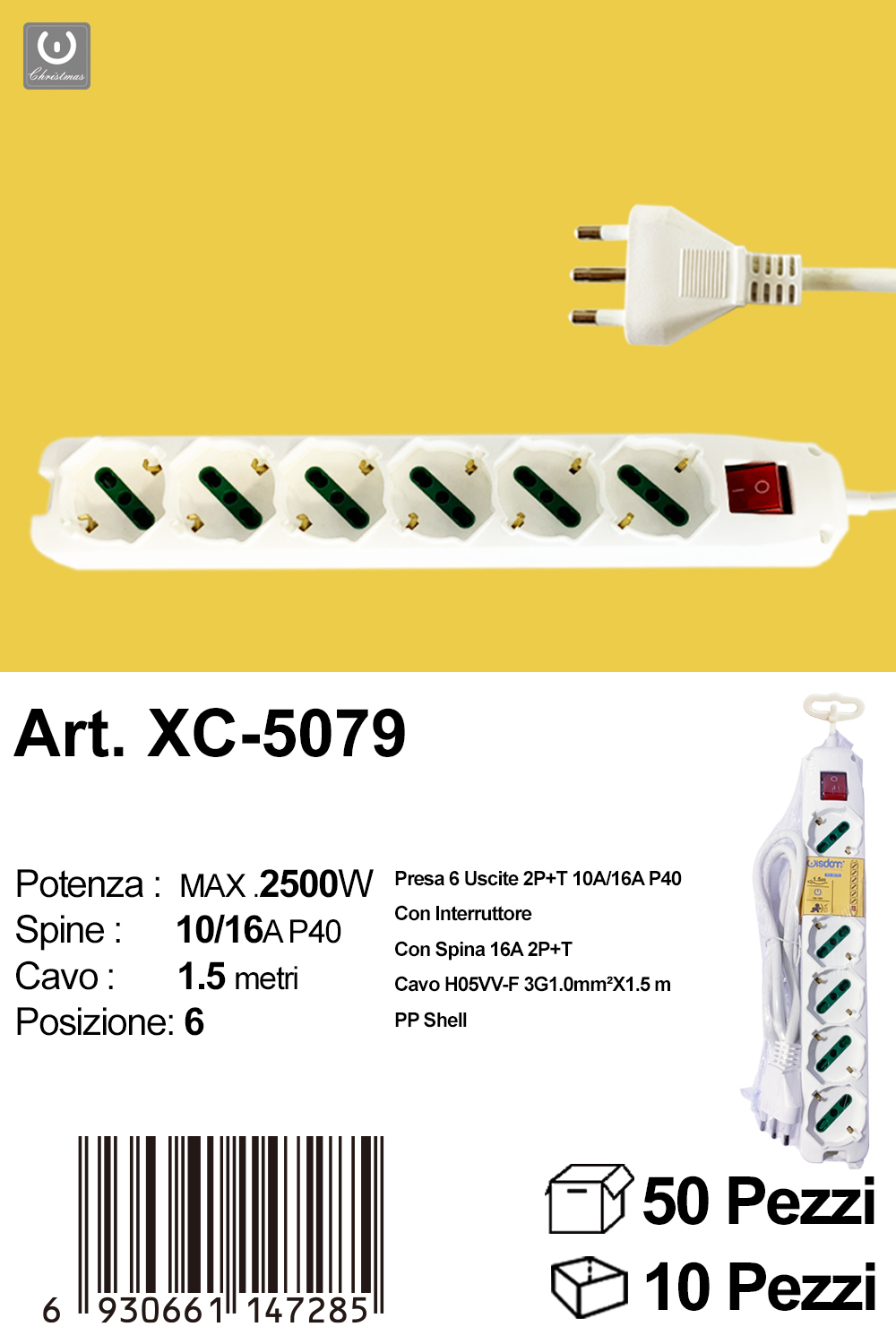 Ciabatta presa bipasso a sei posizioni cavo da 1,5 metri potenza max 2500w con prese uscite da 10 e 16A