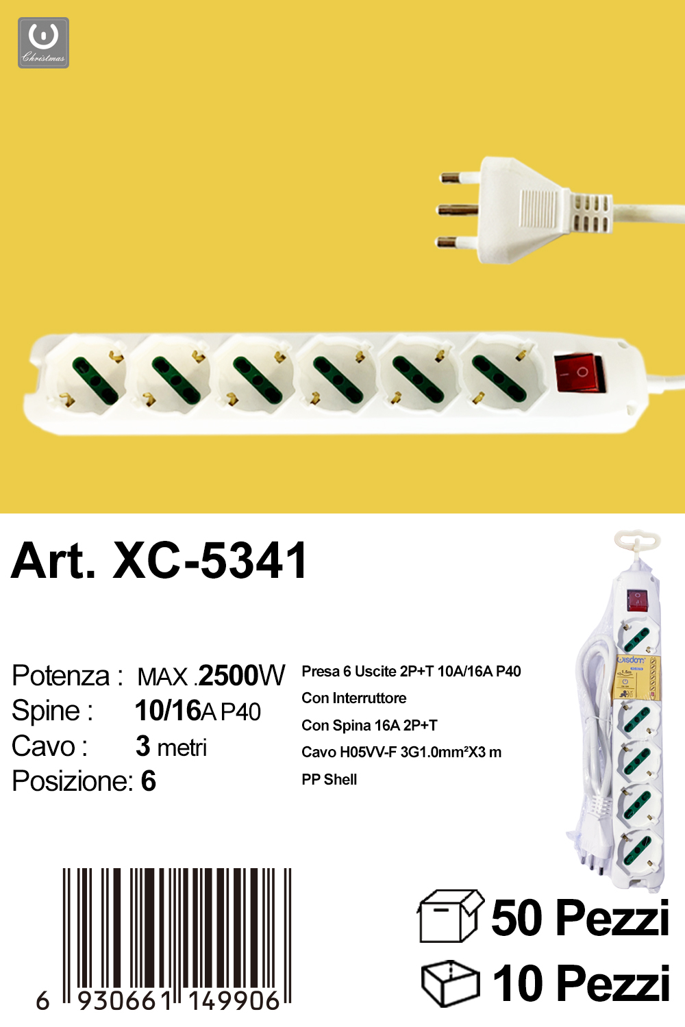 Ciabatta presa bipasso a sei posizioni cavo da 3 metri potenza max 2500w con prese uscite da 10 e 16A