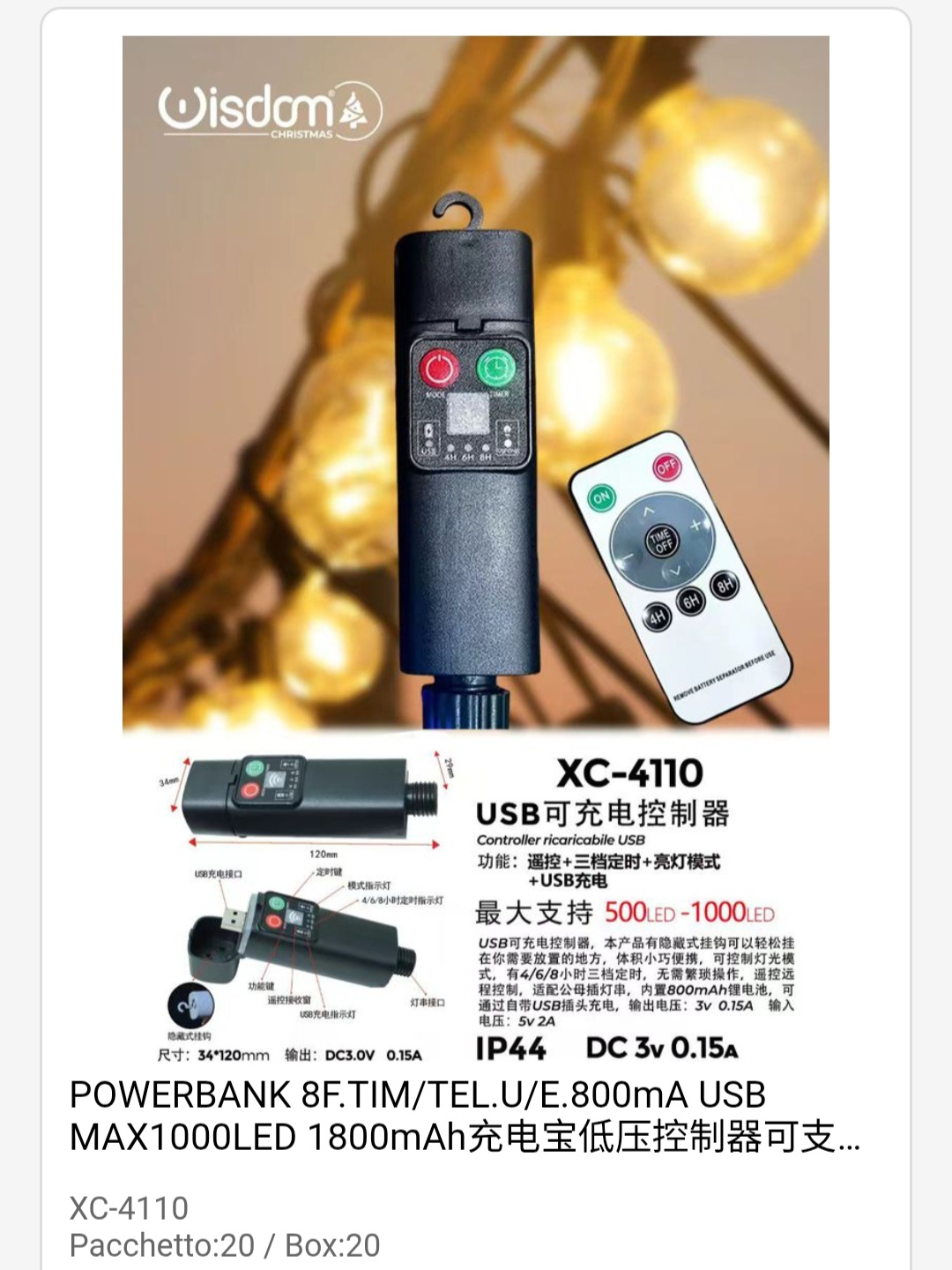 Recensisci per primo “Controller ricaricabile colore nero per catene luminose a LED per alimentazione luci tramite usb o power bank da 800ma grado protezione IP44”
