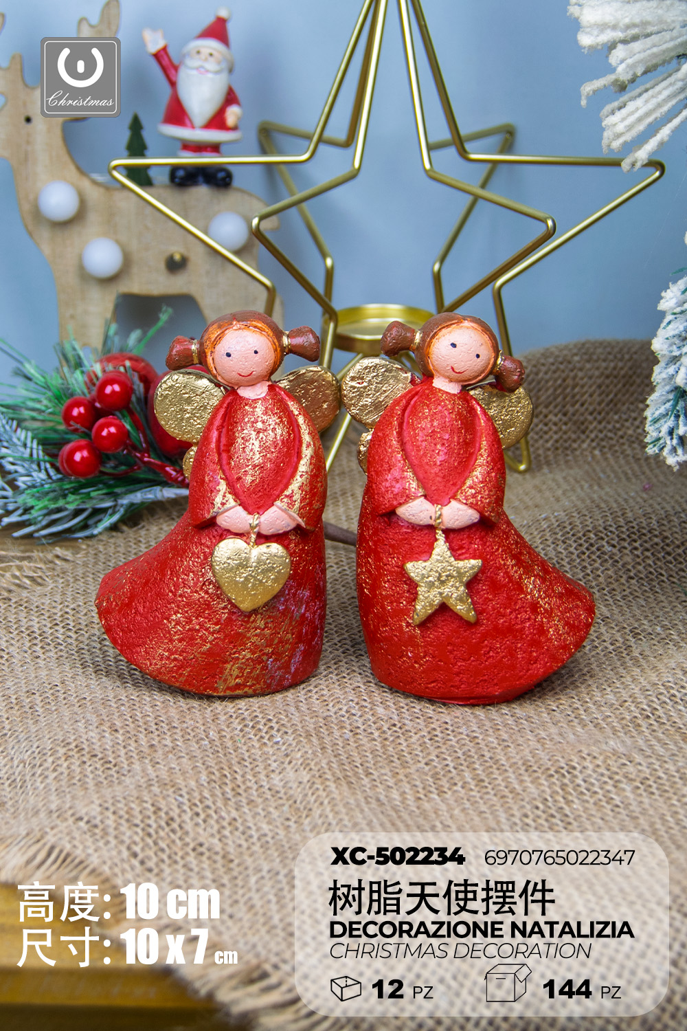 Coppia decorazioni Natalizie Angioletti rossi in resina dipinti a mano dimensione 10x7cm