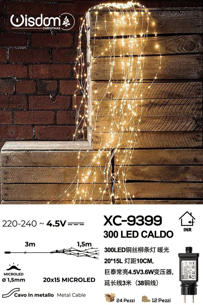Decorazione luminosa a Cascata effetto pioggia da 300 LED luce Calda , 1,5 mt