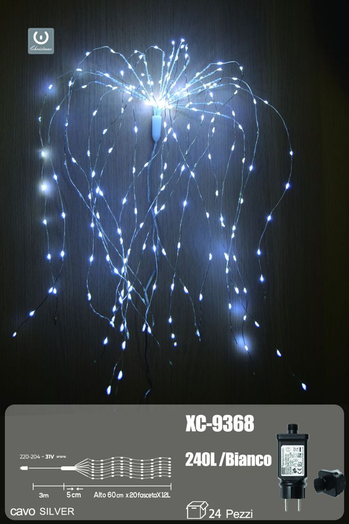 Decorazione luminosa Salice cavo argentato 240 LED luce Calda , 60 cm per 20 fascette luminose