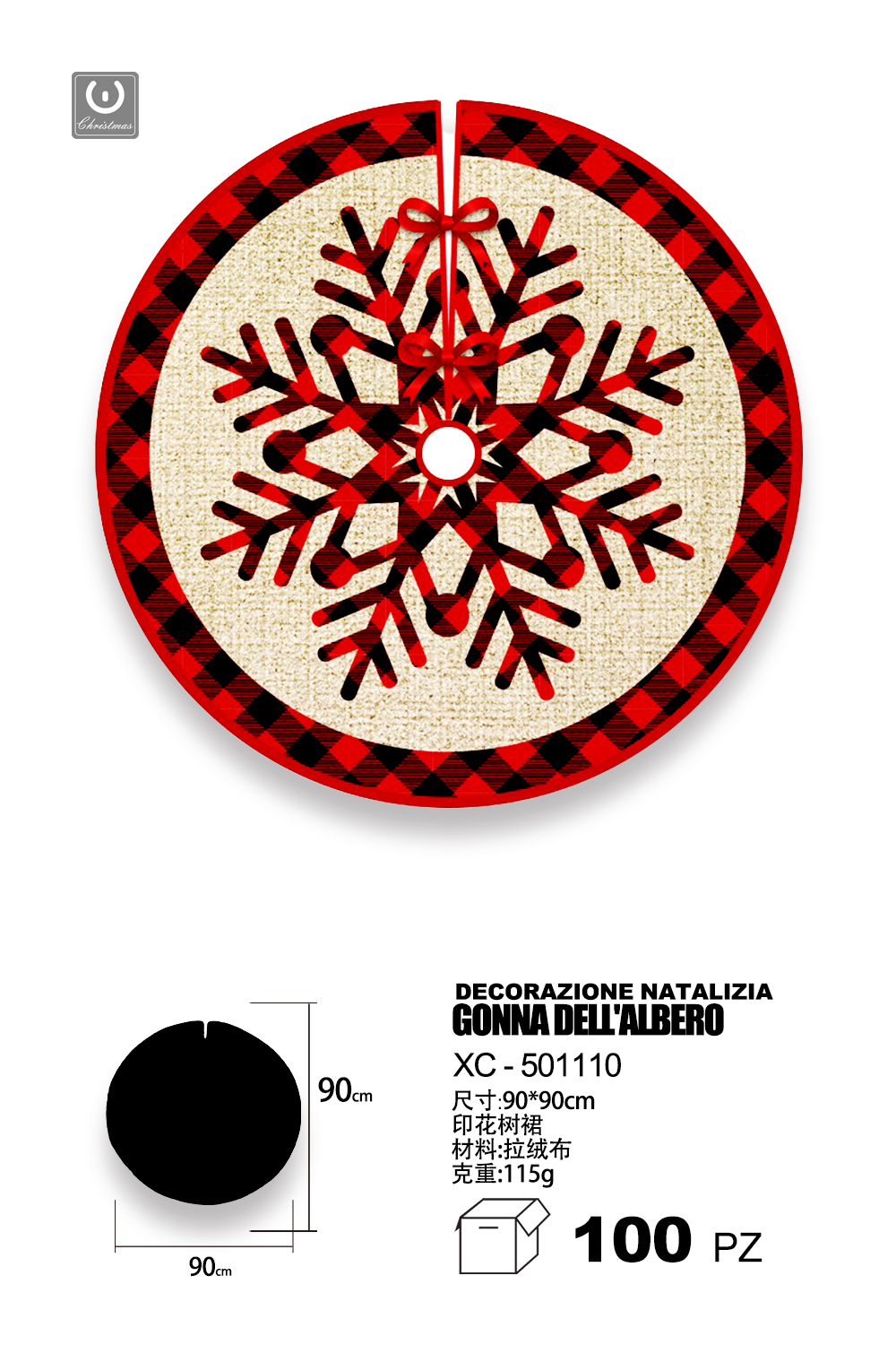Decorazione natalizia gonna copri base per albero di natale materiale in tessuto design rosso con fiocco di neve dimensioni 90x90cm