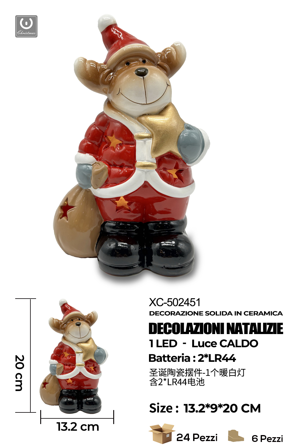 Decorazione Natalizia in ceramica a forma di renna con luce LED calda dimensioni 13,2x9x20cm alimentazione a batterie (2 non incluse)