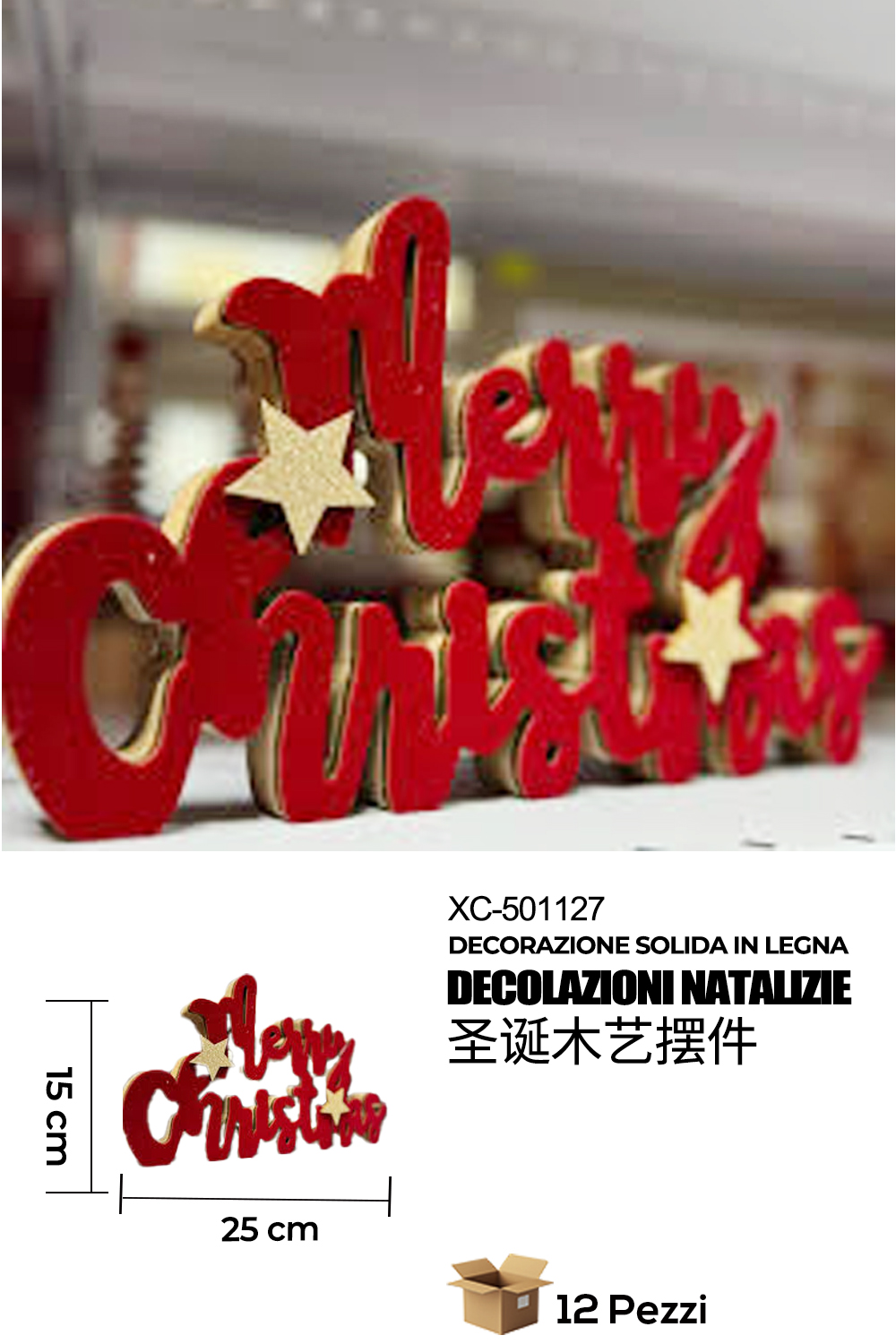 Decorazione Natalizia in legno con scritta Merry Christmas dimensioni 15x25cm