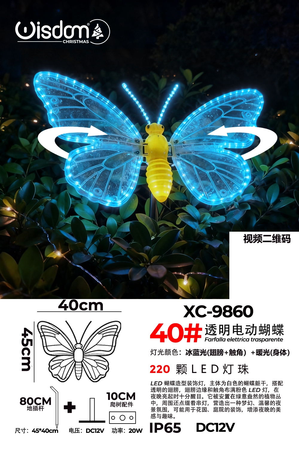 Figura luminosa Farfalla Trasparente LED Luce Calda+Blu IP65 per uso esterno dimensione 45x40cm