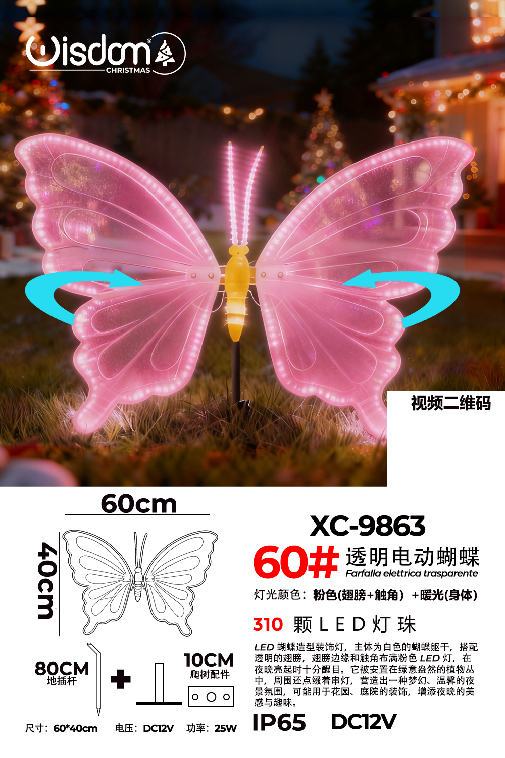 Recensisci per primo “Figura luminosa Farfalla Trasparente LED Luce Calda+Rosa IP65 per uso esterno dimensione 60x40cm”