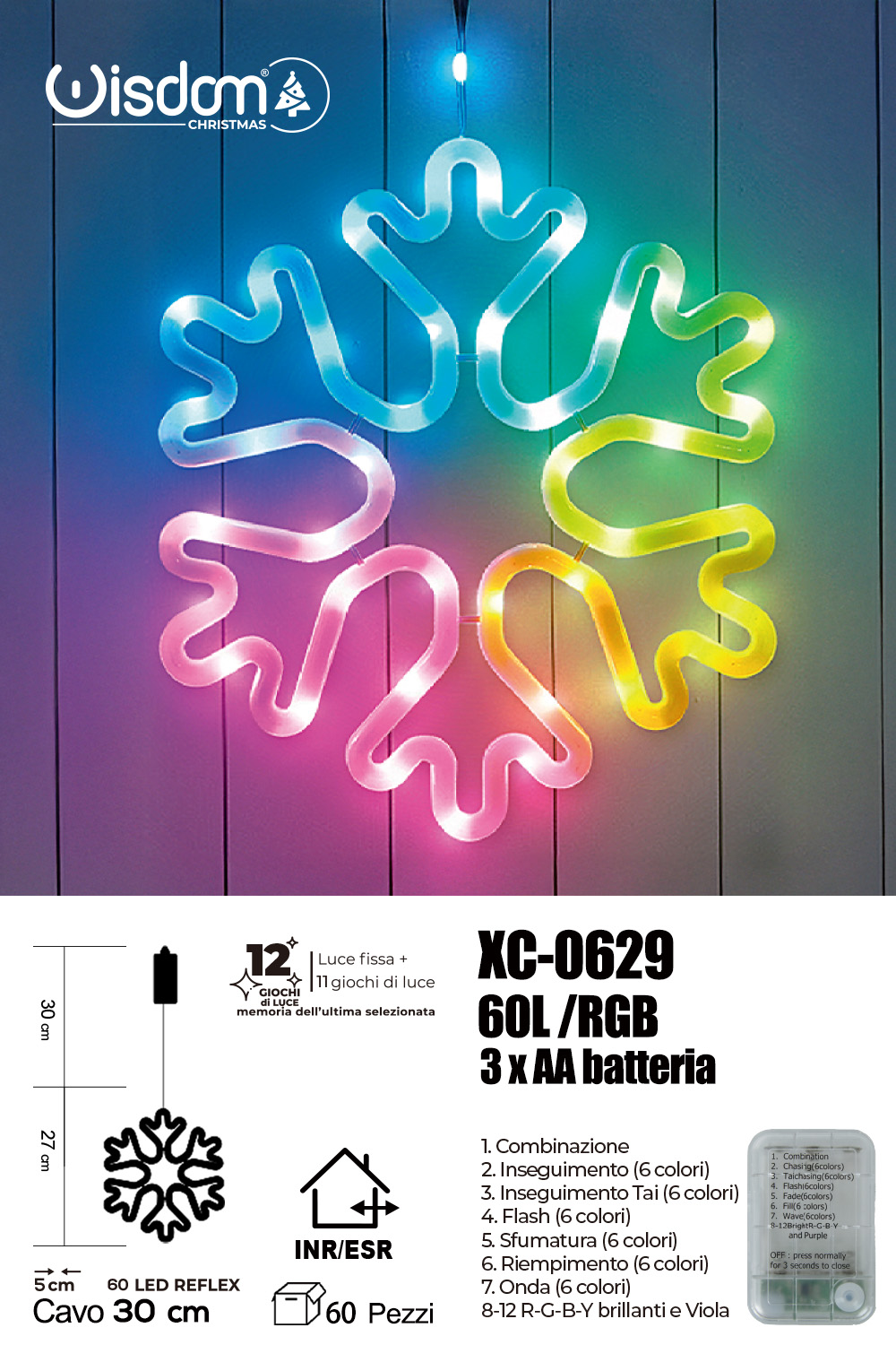 Fiocco di neve decorativo luce LED RGB 12 giochi luce alimentazione a batteria 3pile (AA) controllo app o telecomando