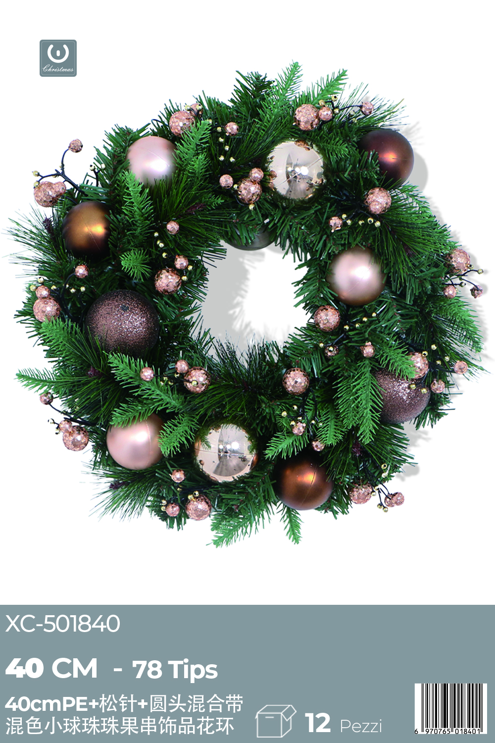 Ghirlanda Natalizia decorativa con palline dimensione 40cm