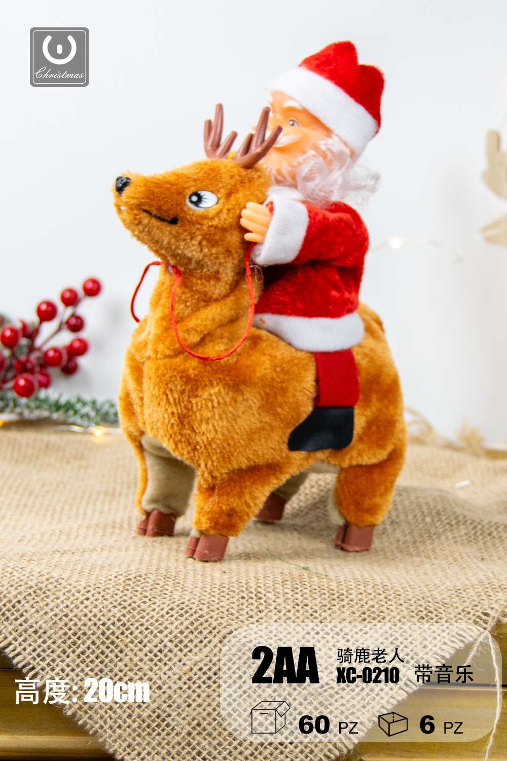 Giocattolo Natalizio Babbo Natale con renna che canta e balla altezza 20cm alimentazione a batteria (2pile non incluse)