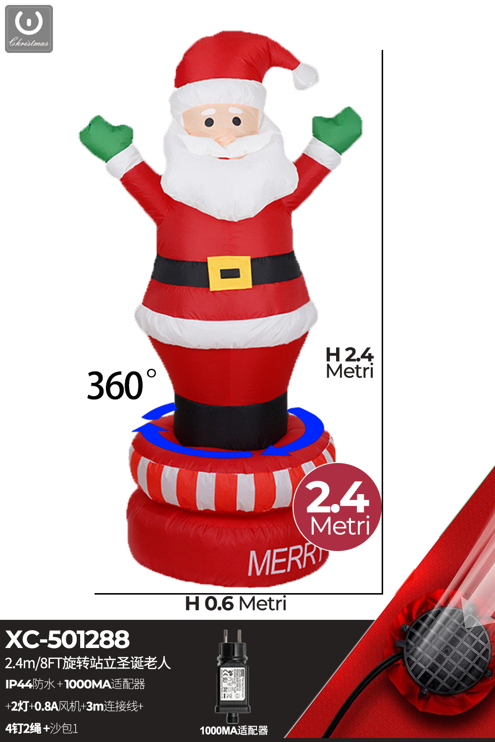 Gonfiabile rotante a 360° Natalizio a forma di Babbo Natale con luci altezza 2,4 metri IP44 adatto per uso esterno