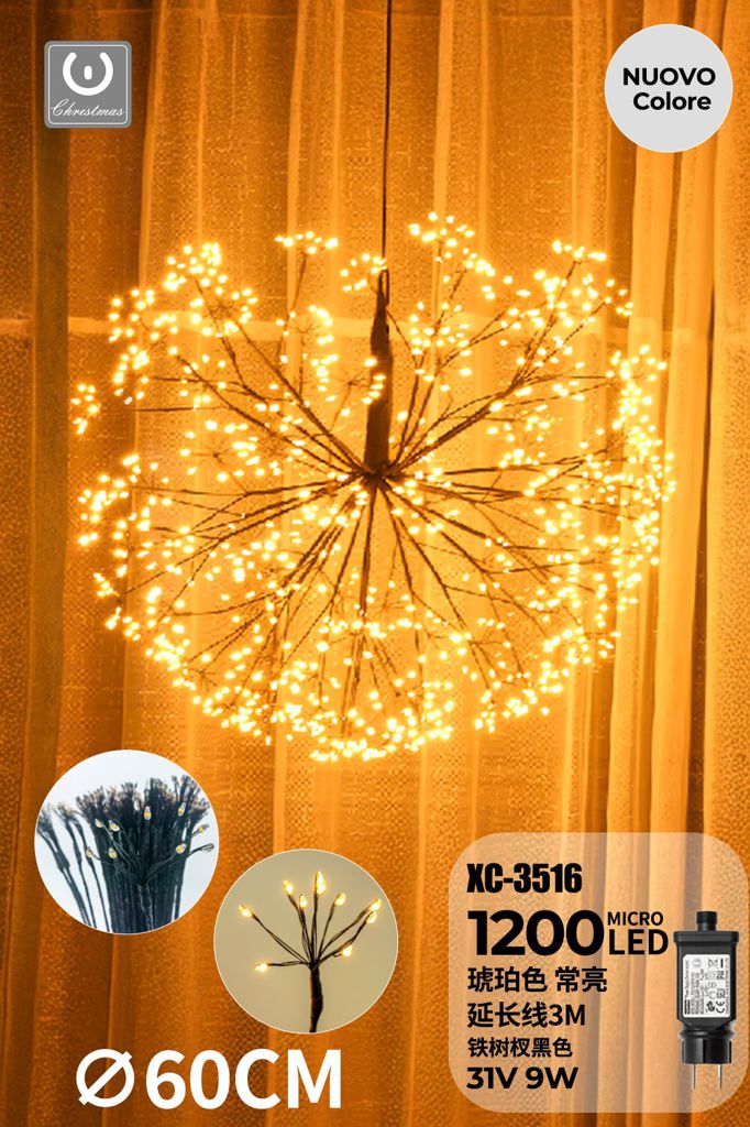 Lampada a forma di Dente di Leone 1200 LED color Ambra, diametro 60 cm