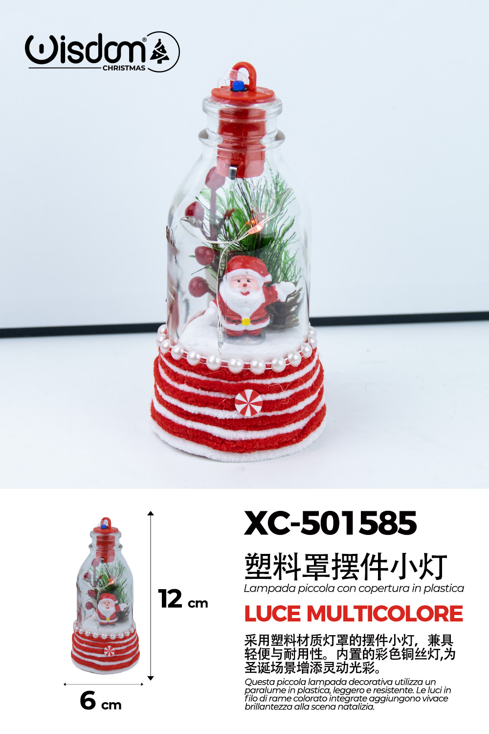 Lampada decorativa natalizia in plastica con luci LED multicolor decorazione interna a forma di babbo natale alimentazione a batterie (non incluse) dimensioni 6x12cm