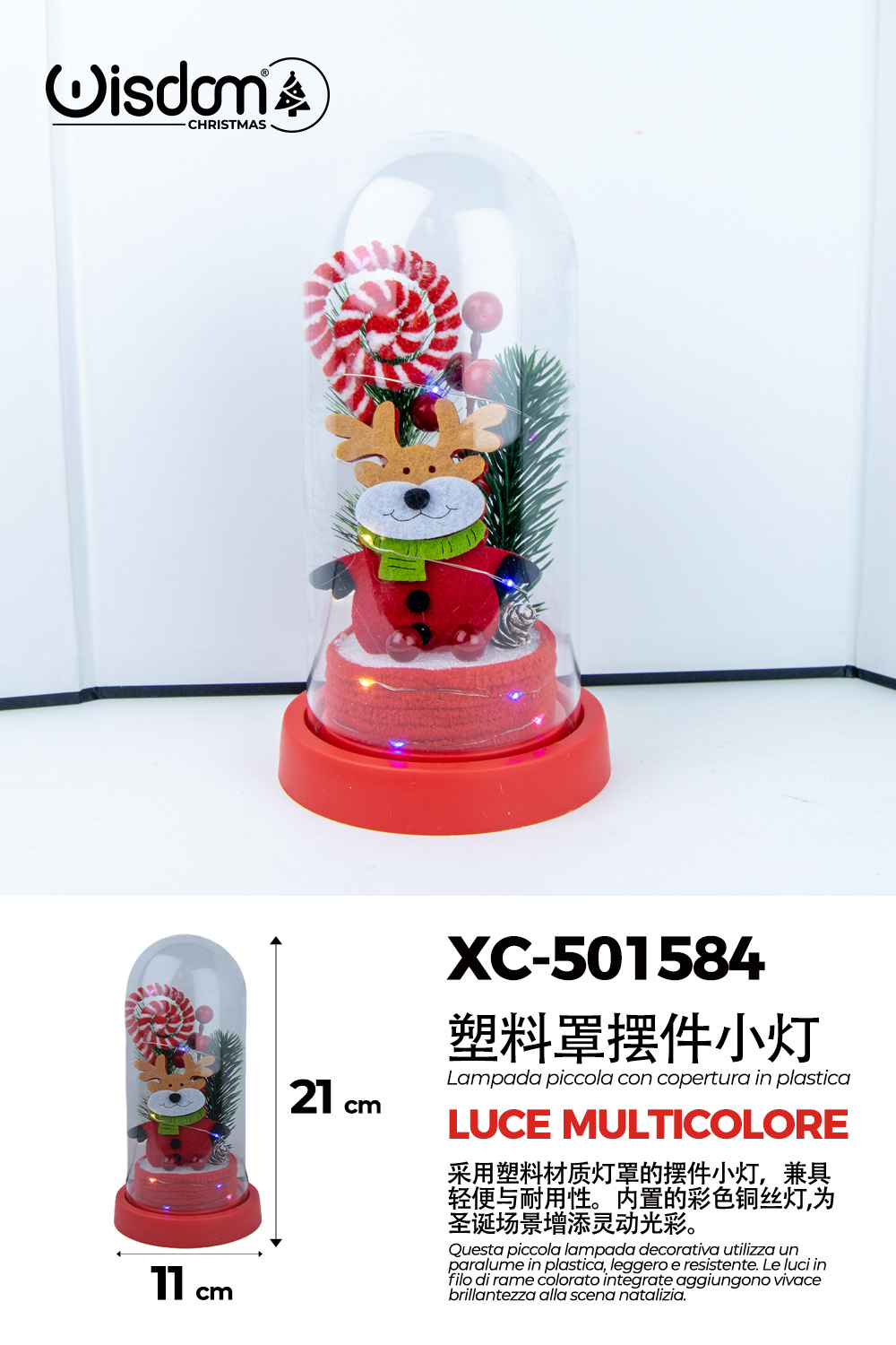 Recensisci per primo “Lampada decorativa natalizia in plastica con luci LED multicolor decorazione interna a forma di renna natalizia alimentazione a batterie (non incluse) dimensioni 11x21cm”