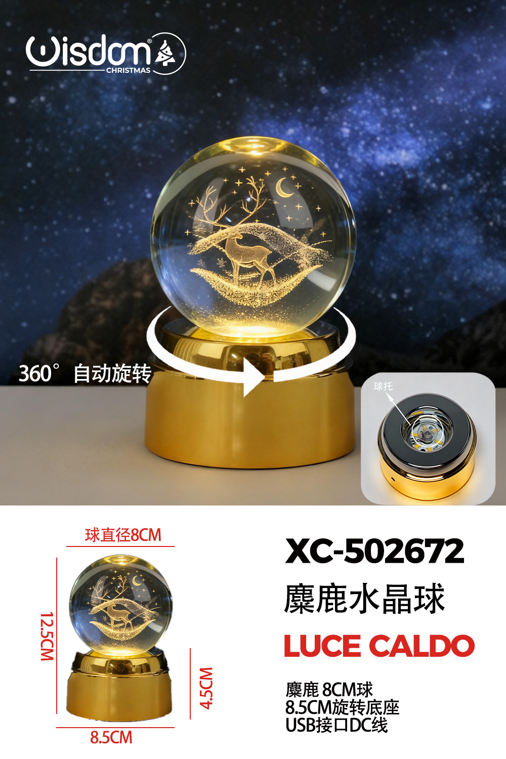 Lampada decorativa rotante a 360° sfera cristallo 8cm da tavolo con incisione laser cervo illuminazione a LED luce calda alimentazione usb